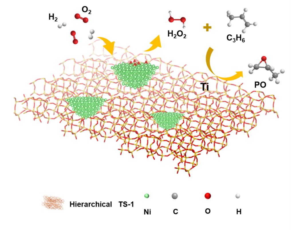 图1. Ni/TS-1催化剂上丙烯气相环氧化制环氧丙烷示意图