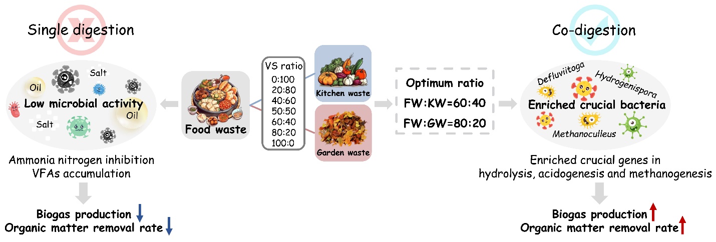图1. 餐厨垃圾高温厌氧共消化提高产甲烷性能示意图