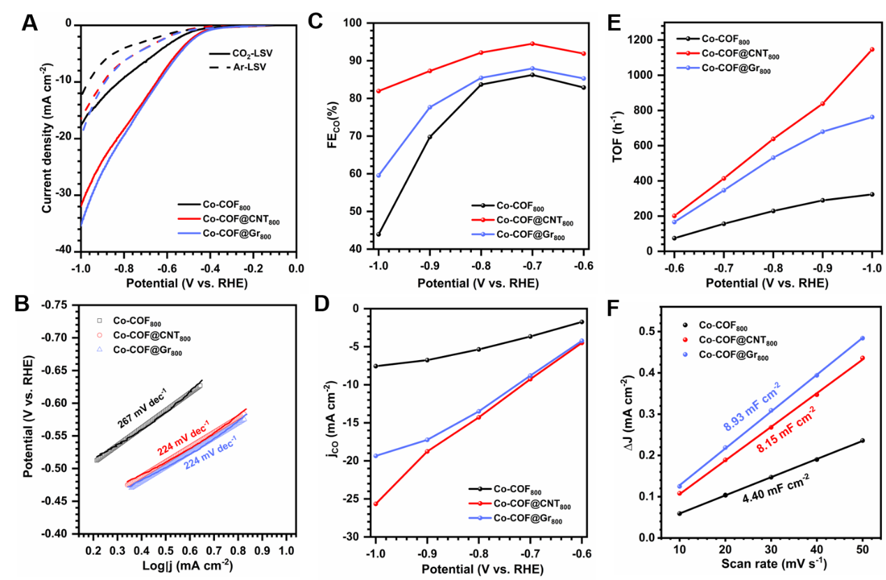 总之,该研究通过控制碳结构从1D到3D,展示了COF衍生碳的尺寸工程在CO2RR催化中的应用。COF衍生碳提供了丰富的N位点形成CoN5催化中心。与二维和三维碳基催化剂相比,以纳米碳管为模板的一维催化剂具有更高的二氧化碳结合能力、更多的缺陷位点和更高的电子传导性,从而具有更高的二氧化碳催化活性和二氧化碳选择性。该研究为开发高效的基于COF的催化剂提供了新的视角。