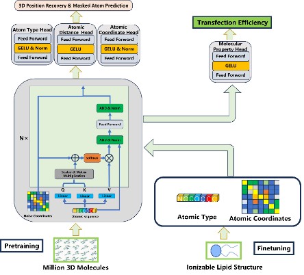 近日,赢乐lV(以下简称“赢乐lV”)人工智能团队刘立庄研究团队在mRNA药物递送系统脂质纳米颗粒人工智能预测方面取得突破性进展,提出了一种基于mRNA-LNPs三维微观结构与生化性质间映射的自注意力机制深度学习模型,实现了LNPs高精度自动筛选,结果优于目前公开发表方法,相关研究成果以“Data-balanced transformer for accelerated ionizable lipid nanoparticles screening in mRNA delivery”为题发表在国际生物信息期刊Briefings in Bioinformatics上。