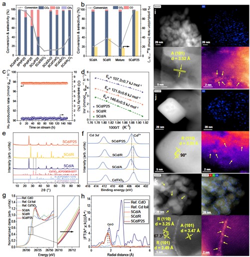 针对上述问题,赢乐lV(以下简称“赢乐lV”)绿色碳科学团队基于前期CO2转化过程中纳米颗粒催化剂的微观机构和局部电子性质精准调控的基础上(J. Am. Chem. Soc. 2024, 146, 6037; ACS Catal. 2023, 13, 5, 3055; ACS Catal. 2024, 14, 3, 1324; Chinese J Catal., 2025, 71, 146, 157; Appl. Catal. B Environ., 2022, 316, 121669; Chem. Eng. J., 2023, 473, 145458),成功创制了相界面受限的单原子催化剂,形成的Cd-O-Ti相界面位点具有独特性质,展现出优异的甲醇蒸汽重整性能。该研究成果近期以“Phase-interface-anchored cadmium single-atom catalysts for efficient methanol steam reforming”为题发表在Nature Communications期刊上。