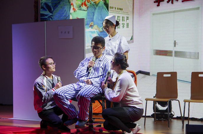 晚会的第二篇章由一曲阿卡贝拉的无伴奏合唱《夜来香》拉开序幕,此曲由高研院及东华大学同学组成的八人组合“Catalyst”为大家倾情演绎,观众体味到了传统与西方艺术的完美结合,感觉回味无穷。紧随其后的由SARI灯光女神殷雯婧与东华小伙伴陈雷芃带来的舞蹈《Into you》,一改深情气氛,重新点燃现场情绪,热情、跳跃、旋转,随着节奏热舞,舞出了无限动感无限活力的青春,令现场气氛嗨到了顶点。一场完整的晚会怎能没有小品!由上科大同学们带来的《365个祝福》,从社会热点“医患关系”出发,引发感情、信任、感恩等扣人心弦的思考,更是为新年带来了365个祝福!随后,由高研院张业蕾等同学带来的可爱无敌的韩舞《Candy》,带领观众进入粉色糖果世界,为晚会增添了一抹彩虹糖般的甜蜜。我们的女主持汤逸飞更是多才多艺,身兼多职,紧接着为大家带来一首动人的《morning》,清澈的歌声,简单而安静,细细品味亦或是回忆,从歌声中传递出了爱与温暖,此刻岁月静好。