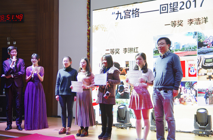 晚会中间还开展了研究生“九宫格-回望2017”摄影征文活动的颁奖仪式,各位才子佳人用9张精彩照片,以“微总结”的特色表达方式展现了自己2017年难忘的回忆以及对未来的美好祝福。