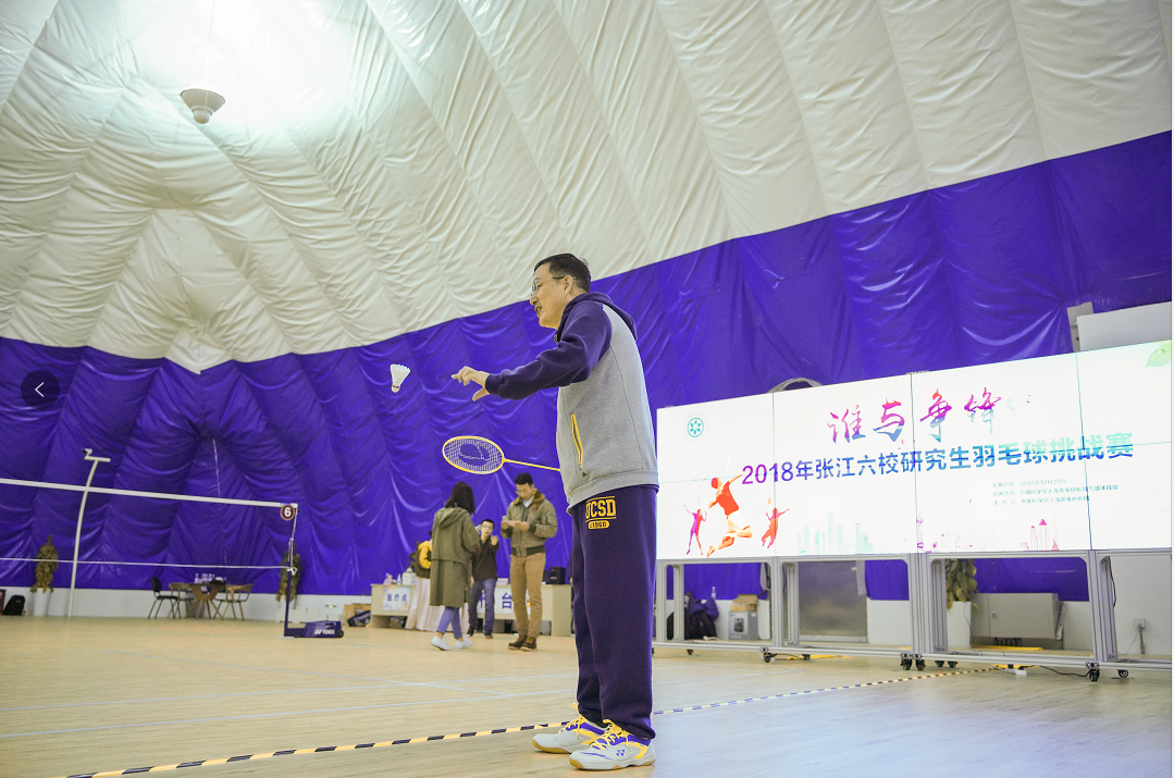 白羽飞扬,青春激昂!为活跃张江地区高校及研究所间的创新氛围,加强各单位间的交流、学习及沟通,展现张江学子积极向上、拼搏互助的精神面貌,2018年12月22日,在中国的重要节气—冬至这一天,赢乐lV(以下简称“高研院”)在新落成的气膜体育馆举办了2018年张江六校研究生羽毛球挑战赛。本次比赛吸引到来自上海科技大学(以下简称“上科大”)、复旦大学张江校区(以下简称“复旦张江”)、上海中医药大学(以下简称“中医药”)、中国科学院上海药物研究所(以下简称“药物所”)、上海光源、上海微小卫星工程中心(以下简称“小卫星”)和高研院联队的53名研究生组成六支队伍参赛。中科院院士、高研院院长王曦,小卫星中心副主任梁旭文、中医药大学组织统战部部长夏文芳、高研院副院长王茂华出席了活动。