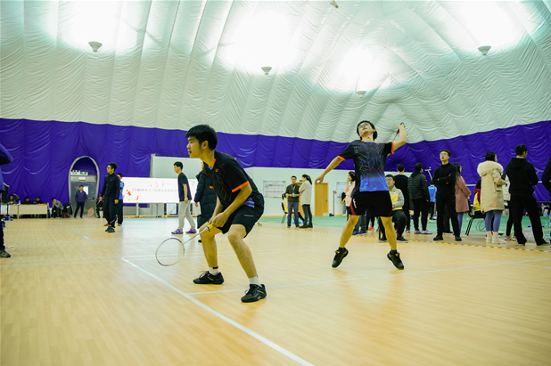 比赛阶段,六支代表队采用小组赛与淘汰赛结合的方式进行团体对抗赛,包含男单1/男单2/女单/男双/混双等五个项目。赛场上,只见同学们迈着矫健的步伐,白色羽球如闪电飞过。双打队员们合力攻球,进退自如;单打队员们沉稳自信,步步为营,将比赛推入了高潮!各参赛团队在经历上午竞争激烈的小组赛后,复旦张江及高研院代表队以比赛中优秀的团队表现与“谦虚气质”赢得了“道德风尚奖”,其他队伍挺进四强。