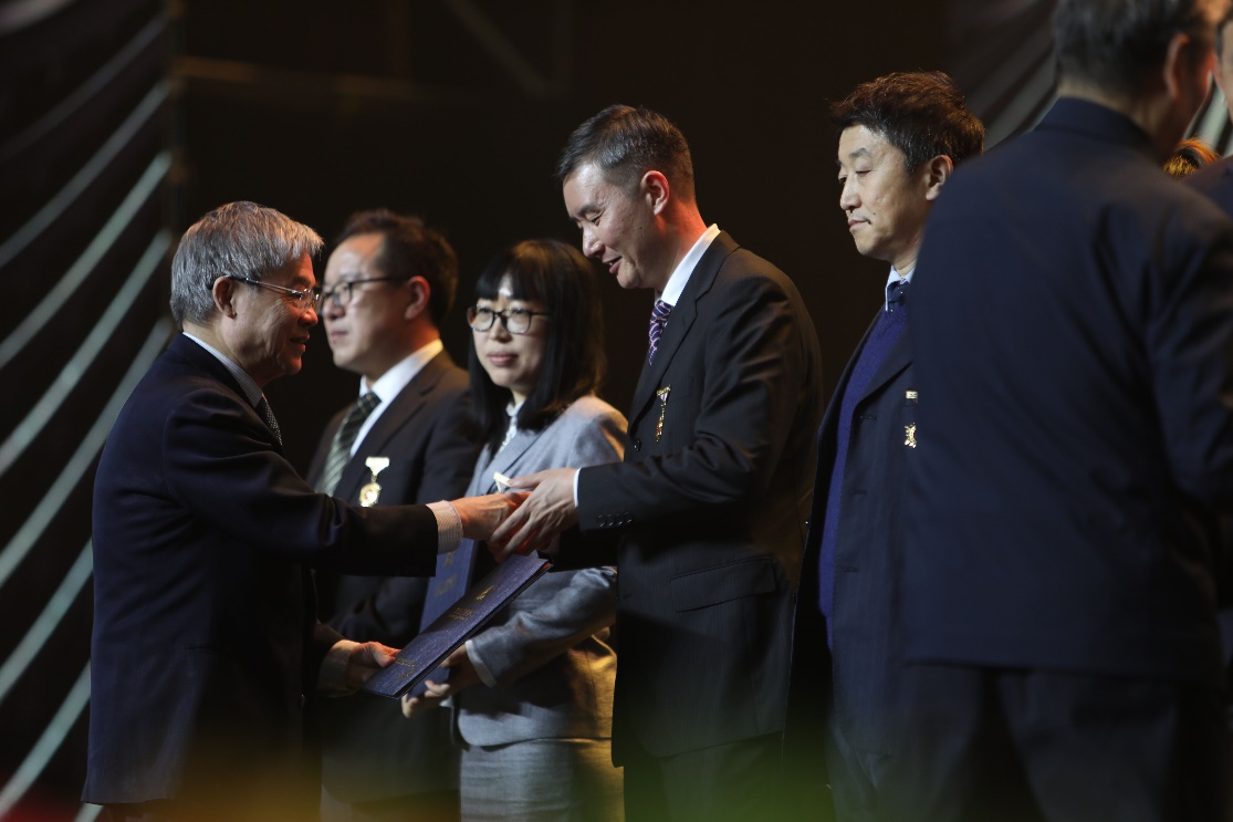 “杰出工程师奖”评审委员会主任邬贺铨院士为褚旭研究员颁奖
