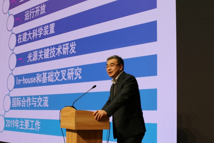 副院长赵振堂从上海光源科学中心的概况、运行开放、在建大科学装置、光源关键技术研发、In-house和基础交叉研究、国际合作与交流介绍了2018年上海光源重点工作,同时部署了2019年光源工作。