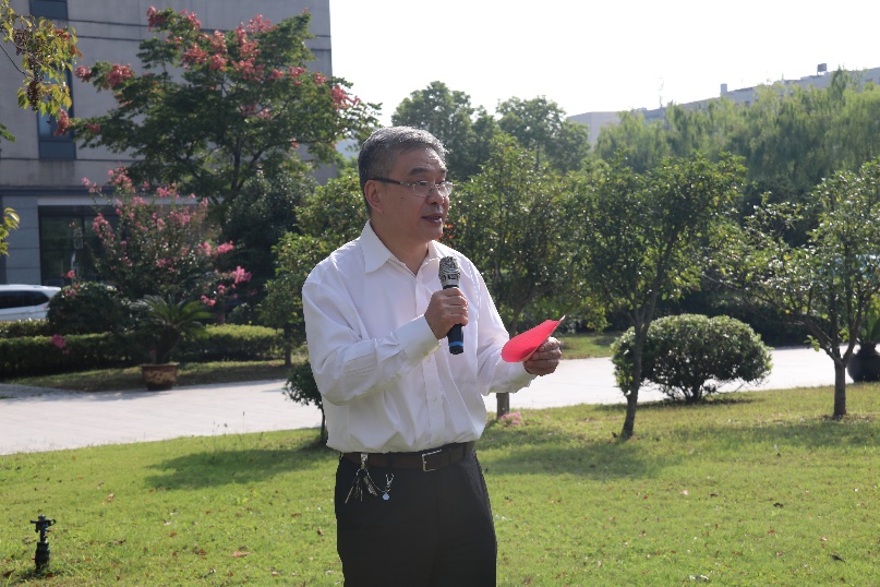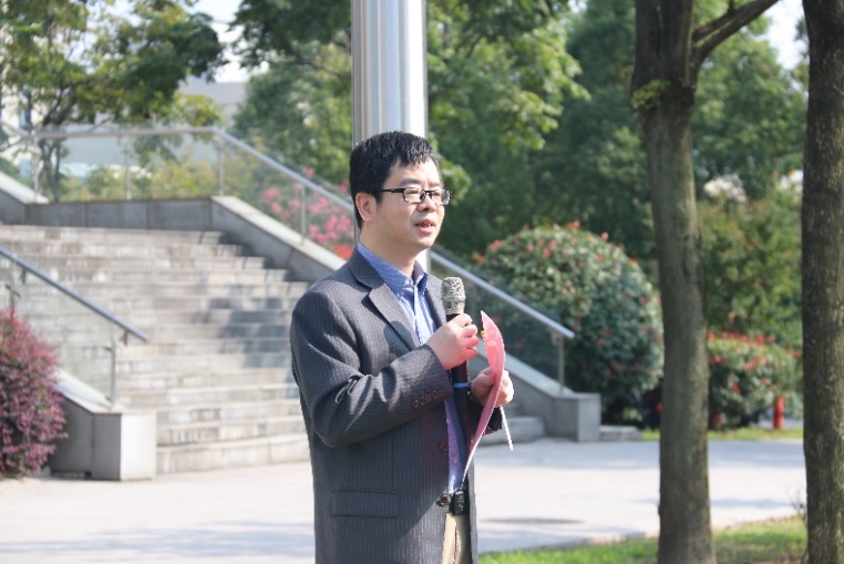 中国科学院院士、高研院院长李儒新在国旗下发表讲话。他代表高研院领导班子,向辛勤工作的全院职工和学生致以节日的问候。李儒新指出,今天是祖国成立71周年纪念日,也是高研院入驻园区后的第10个国庆节,特别值得庆祝。近期高研院大装置建设及科研、产业化都有可喜的进展,面对世界百年未有之大变局,面对党和国家更高的期待,我们要不忘初心、牢记使命,深入学习领会习近平总书记重要讲话精神,准确把握科技工作面临的新形势新任务,树牢科技报国信念,肩负起新时期科技创新的光荣使命,进一步聚焦以形成高研院2.0的特色和优势、积极筹建张江国家实验室、助推上海科创中心建设,以更加奋发有为的精神面貌,为建设世界科技强国而努力奋斗。
