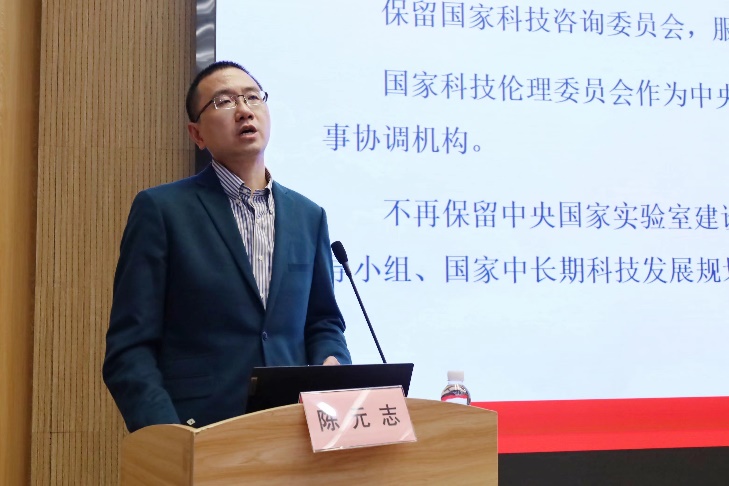 活动还特别邀请到浦东干部学院陈元志教授作题为《以科技创新引领现代化科技强国》的党的二十大精神专题辅导报告。陈元志通过原文剖析和案例解读,总结梳理了习近平总书记关于科技创新重要论述的核心要义,深入探讨了世界科技强国三步走的战略目标和实施情况,并系统阐述了以科技强国引领现代化强国建设的总体思路。