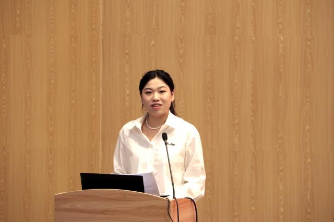 2023级国科大博士研究生孙宇雯同学作为新生代表做了发言。孙宇雯同学以感谢、好奇、期待、思考开篇,结合高研院院训,号召同学们培养兴趣,学无止境,热爱生活,享受科研,把握时代使命,将个人价值与社会价值紧密结合,真正做到“敢想敢为,又善做善成,在全面建设社会现代国家的火热实践中绽放绚丽之花”。